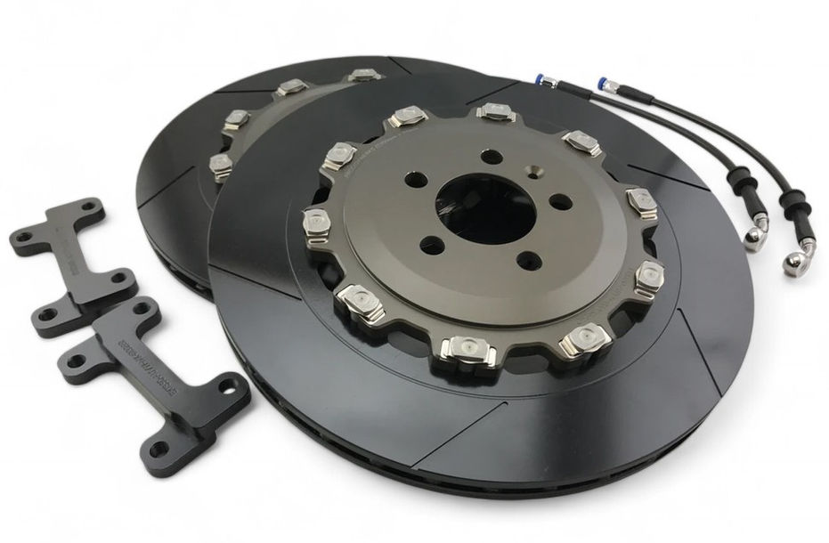 Our FS6 6-Piston Big Brake Kit currently match with our ProdigyWerks 2-piece design floating brake discs and comes in two different sizes, the 330mm x 32mm (13") and 356mm x 32mm (14"). We specifically work with the disc thickness of 32mm to better handle thermal stress during extreme driving conditions. We also have Carbon Ceramic Floating Discs kit options to match with our FS6 6-Piston Caliper with the disc size of 380mm and 390mm. Our Carbon Ceramic Floating disc assembly each only weights approx. 5.50kg to 6.50kg each. For more information, see Carbon Ceramic Brake Discs or visit our Carbon Ceramic Floating Brake Discs page.