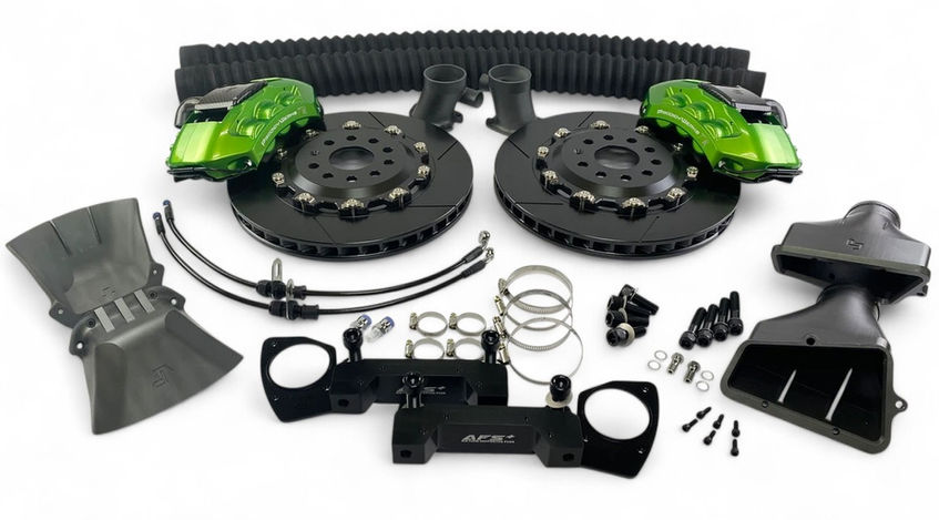 Prodigywerks AFS+ (Air-Flow Supported) aluminum mounting brackets; compatible with Prodigywerks Air Scoop, which supports additional secondary airflow from behind the wheel to your discs.